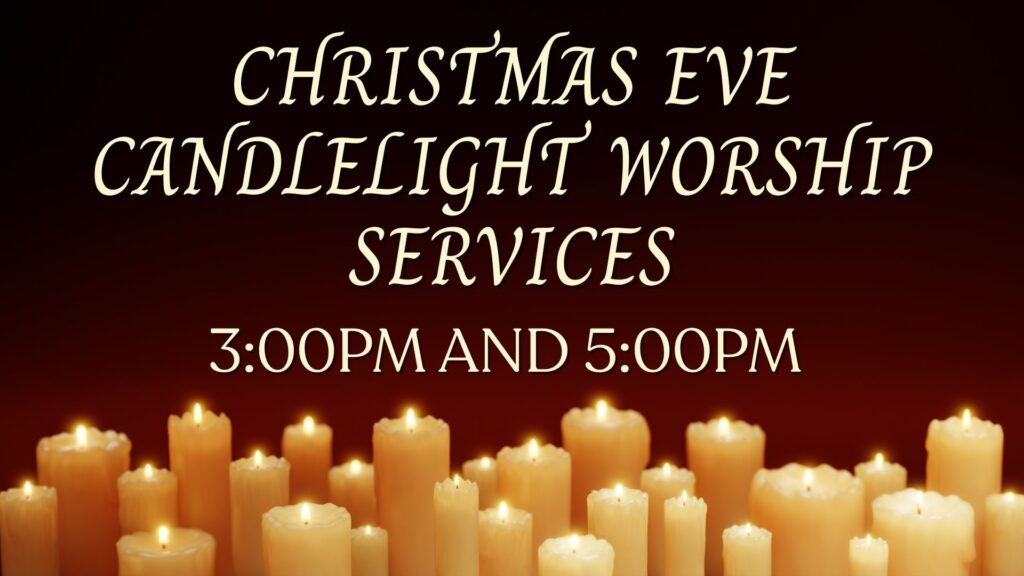 Christmas Eve – Candlelight Worship services at 3pm & 5pm
